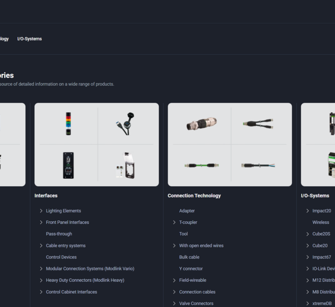 Ratkaisumme tuovat signaalit, datan ja tehon suoraan prosessien äärelle. Tuotevalikoimamme kattaa laajan kirjon – liittimistä ja I/O-järjestelmistä virtalähteisiin ja verkkoratkaisuihin sekä Vario-X-järjestelmään, joka on nopeasti ja vaivattomasti asennettava modulaarinen kokonaisratkaisu kaapittomaan automaatioon. Plug & Play -visiomme tueksi tarjoamme myös kattavia digitaalisia ratkaisuja asennuksiin, käyttöönottoon ja huoltoon.